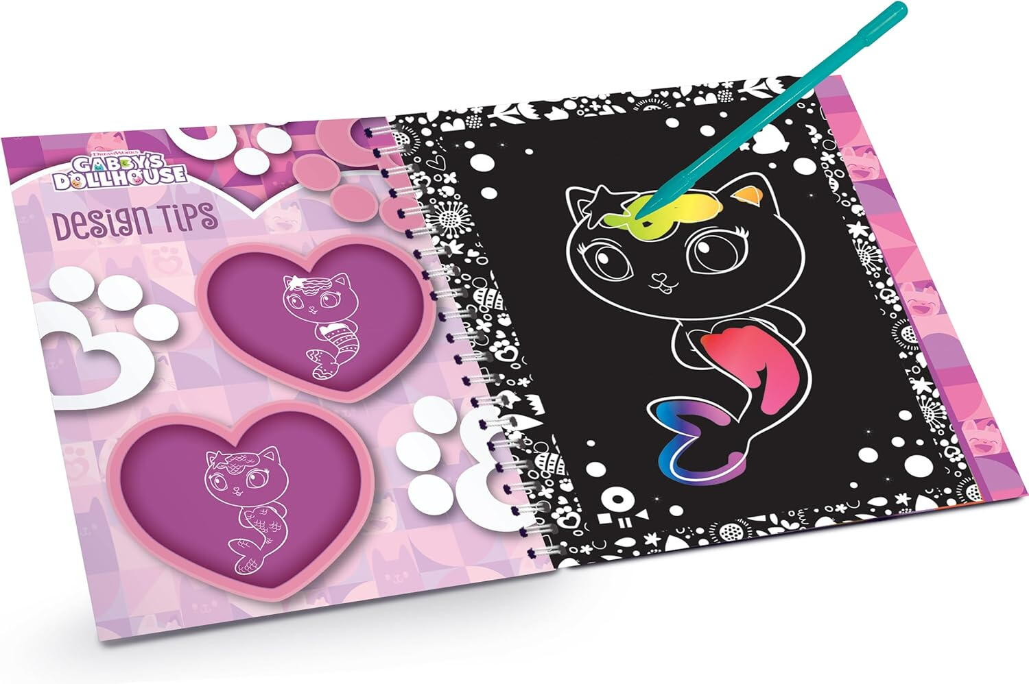 Exploreaza magia culorilor cu aceasta carticica de razuit Gabby's Dollhouse si pisicute. Copiii tai vor putea razui suprafata neagra pentru a dezvalui imagini stralucitoare, transformand fiecare pagina intr-o opera de arta fascinanta.
