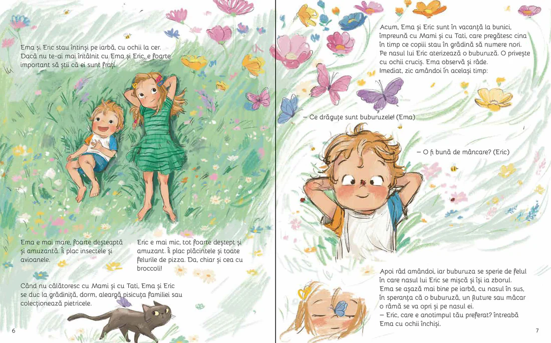 Copiii tind să-și manifeste emoțiile foarte puternic. Ei au nevoie de timp și resurse pentru a le înțelege și a le putea gestiona. Ema și Eric le vin în ajutor cu acest nou volum de aventuri. Și ei trec în fiecare zi prin tot felul de situații care le aduc în suflet și în corp bucurie, furie, frică, tristețe, vinovăție, plictiseală, mândrie, frustrare, invidie, dezamăgire, nerăbdare sau uimire. Cu mult umor și relaxare, asociind emoțiile cu animăluțe cu care seamănă bine, copiii vor ințelege 18 dintre cele mai comune emoții și cum le pot primi în viața lor astfel încât, la finalul zilei, toată lumea să fie bine și să se simtă iubită. Emoțiile, mai ales cele neplăcute, trec mai repede atunci când învățăm cum să le recunoaștem. Corpul nostru ne dă indicii despre ce emoții simțim si putem sa știm foarte ușor ce fel de emoție este. Apoi, în funcție de aceasta, știm ce să facem ca să nu o lăsăm să ne afecteze sau să ne facă să rănim pe cineva.