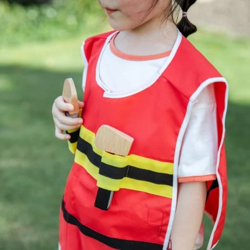 Set realist de pompier cu 12 piese din lemn și 2 piese textil.