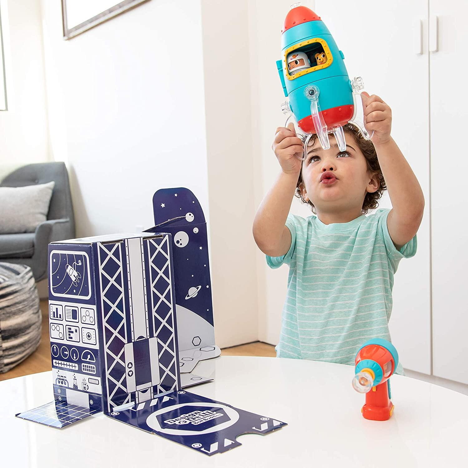 Cu ajutorul acestei rachete poti calatori intr-un univers interstelar plin de distractie!Cei mici isi pot asambla propria racheta si o pot decora cu suruburile transparente incluse in set. Acest produs o sa-i inspire pe cei mici sa-si foloseasca imaginatia si astfel isi vor exersa abilitati de motricitate fina si coordonarea mana-ochi.Nu uita, pastreaza cutia in care vine produsul pentru ca o poti transforma in rampa de lansare pentru racheta! Ce mai astepti? Prietenul tau astronaut Buddy si cainele sau Rover abia asteapta sa te alaturi pentru a participa la o aventura prin spatiul intergalactic!