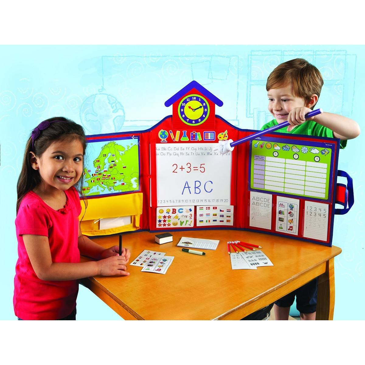 Copilasului tau ii place sa se joace de-a profesorul? Atunci acest set va fi o adevarata incantare pentru el. Oare cum ar arata ora de geografie perfecta?