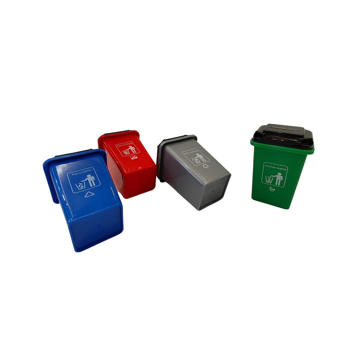 • 4 cosuri de gunoi in 4 culori (verde, albastru, rosu si gri)