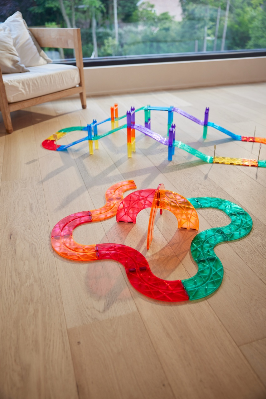 Mai multă viteză, mai multe viraje! Cu acest set de 15 piese magnetice curbate, copiii pot extinde circuitul Cleverclixx și crea trasee mai complexe, mai lungi și mai spectaculoase. Compatibil cu toate seturile Cleverclixx și alte branduri magnetice.