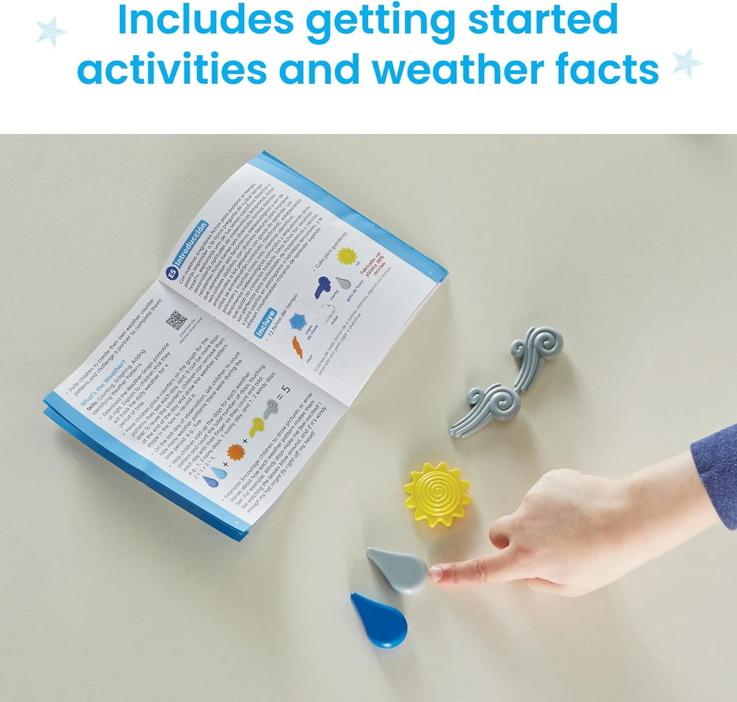 • Ghidul inclus contine notiuni simple despre vreme, permitand integrarea timpurie a cunostintelor stiintifice in procesul de joaca