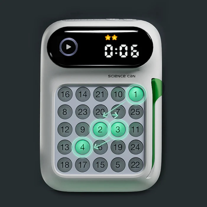 1. Modul crescător - Scopul este găsirea și apăsarea numerelor în ordinea corectă cât mai repede posibil. Acest mod este excelent pentru stimularea atenției focalizate și îmbunătățirea abilităților de concentrare printr-o activitate distractivă și captivantă.
