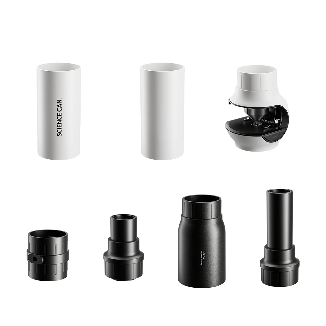 Setul include echipament experimental de înaltă calitate, inclusiv 3 oculare. Designul ergonomic al microscopului le permite copiilor să cerceteze stând în picioare sau în șezut.