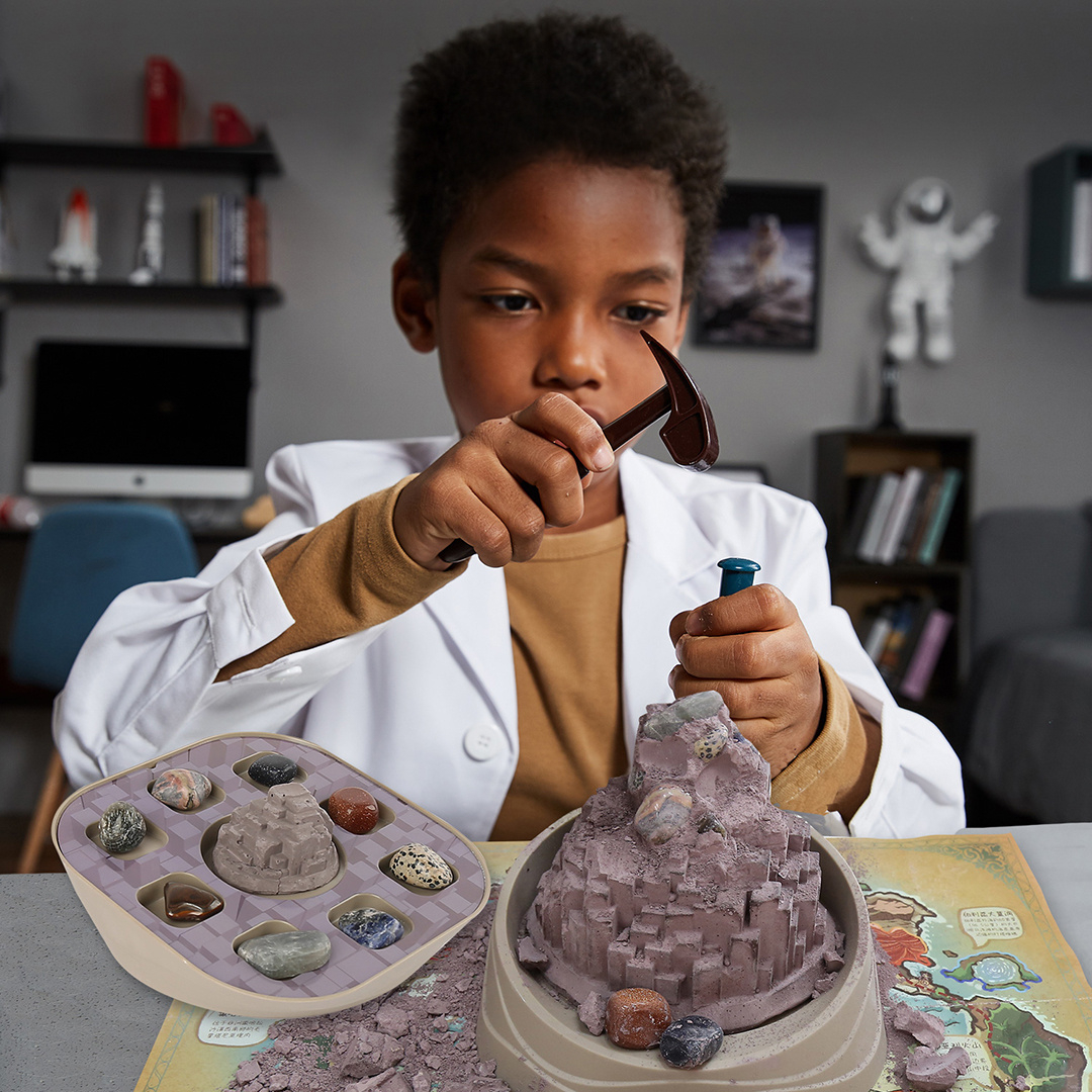 Copiii pornesc la o vânătoare de comori cu setul de excavare a pietrelor prețioase de la Giants Causeway din Irlanda de Nord. Ei sapă ca niște adevărați geologi și descoperă pietrele prețioase fantastice ascunse înăuntru. Bucată cu bucată, înlătură stânca în căutarea pietrelor prețioase strălucitoare. În acest proces, ei își extind cunoștințele despre formațiunile geologice și înțeleg efectele excavațiilor. Stârnește-le curiozitatea și aprinde-le simțul aventurii cu setul de excavare și creează o experiență de neuitat pentru tinerii exploratori.
