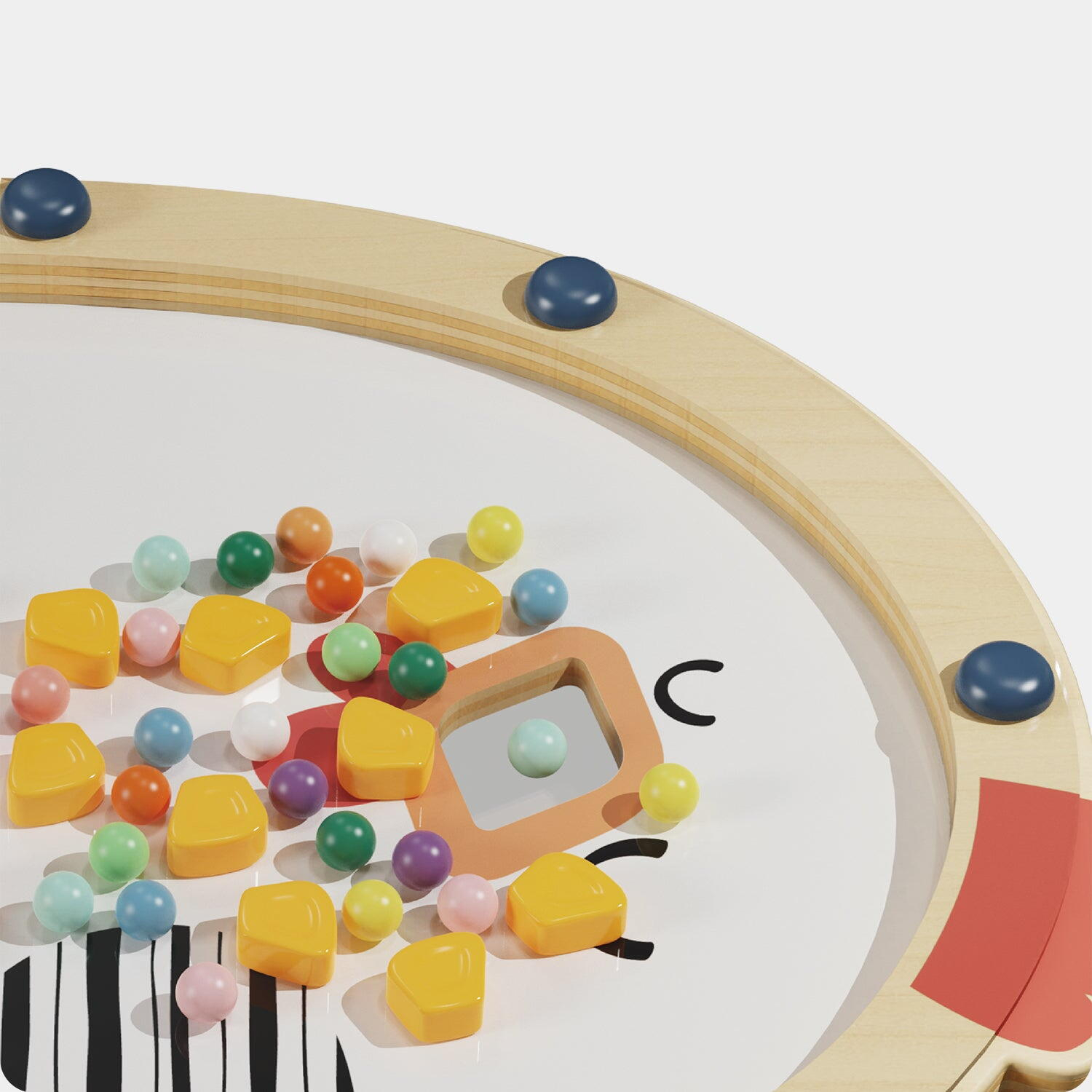• realizat din lemn cu o suprafata neteda si ABS si toate componentele inchise in siguranta, asigurand un timp de joaca sigur si durabil