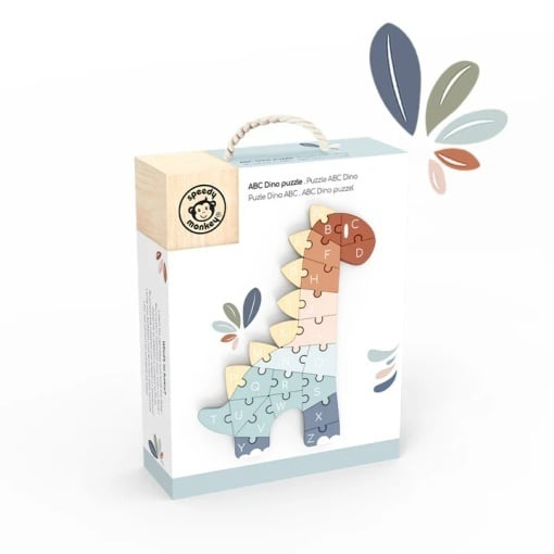 Puzzle colorat și educativ, realizat din lemn certificat FSC®, pentru a-i ajuta pe cei mici să descopere literele alfabetului completând un puzzle în formă de dinozaur. Fiecare piesă este robustă, ușor de manevrat și vopsită în culori vii, pentru ca cei mici să învețe prin joacă, să-și dezvolte motricitatea fină și să facă primii pași spre învâțarea literelor.