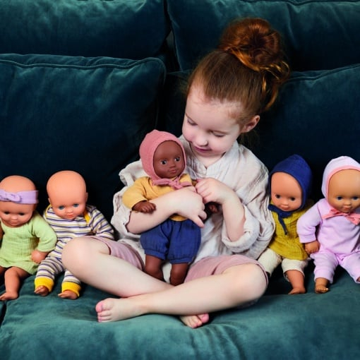 Este ușoară, iar dimensiunea sa (32 cm) se potrivește perfect pentru mânuțe mici. Corpul păpușii este din material textil sub forma unui body drăguț. Este flexibil la fel ca un bebelus adevarat. Fața, brațele și picioarele sale sunt realizate din vinil foarte moale, care este plăcut la atingere. Ochii se închid când este culcat pe spate.