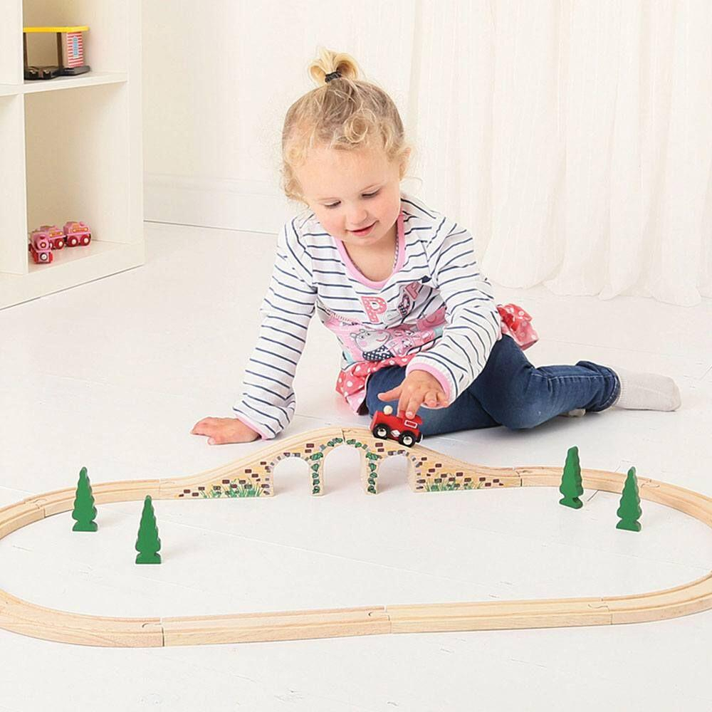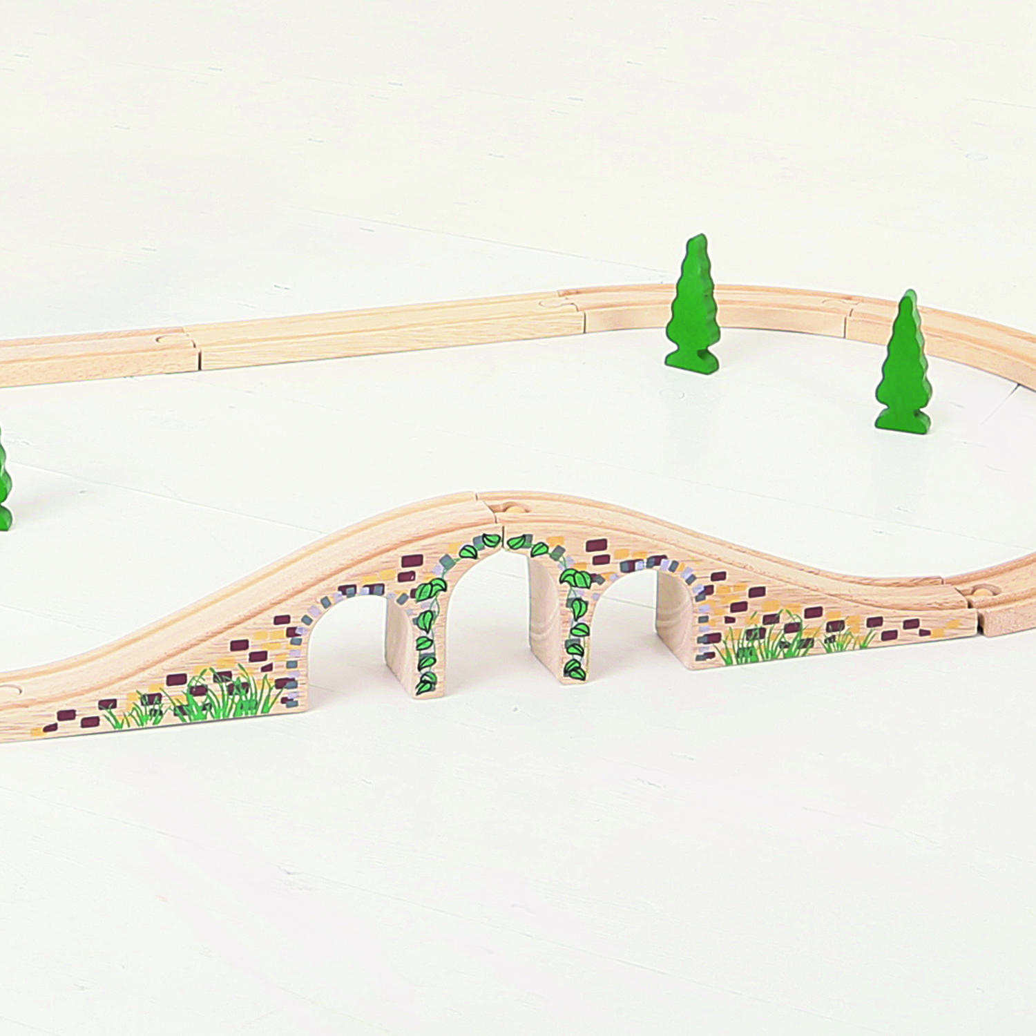 - podul cu arcade este compatibil cu alte seturi de tren si accesorii din gama Bigjigs Rail sau seturi de la alte